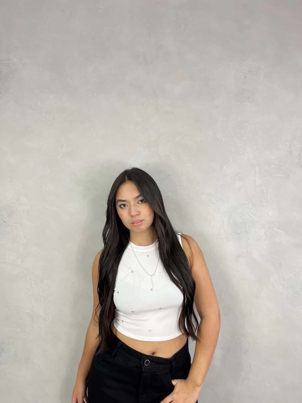 Um cropped básico nada básico! Ele vem no tecido canelado super confortável e com brilhos cravejados que deixam o look moderno, iluminado e com aquela pegada fashion.